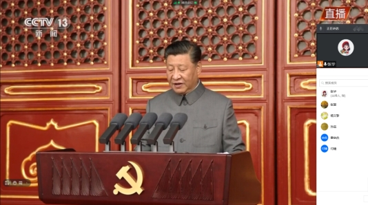 7月1日上午,财务与会计系教师党支部开展主题党日活动,支部书记张华老师召集支部全体无教学任务的教师党员,通过腾讯会议集体观看《庆祝中国共产党成立100周年大会》的实况直播,并学习中共中央总书记、国家主席、中央军委主席习近平的重要讲话。